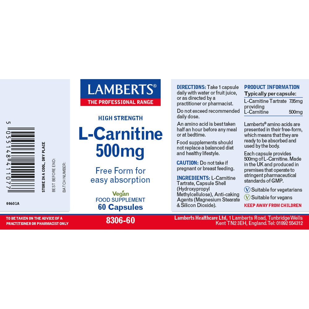 Lamberts L-Carnitine 500mg - 60 caps - RightNutri-Supplements