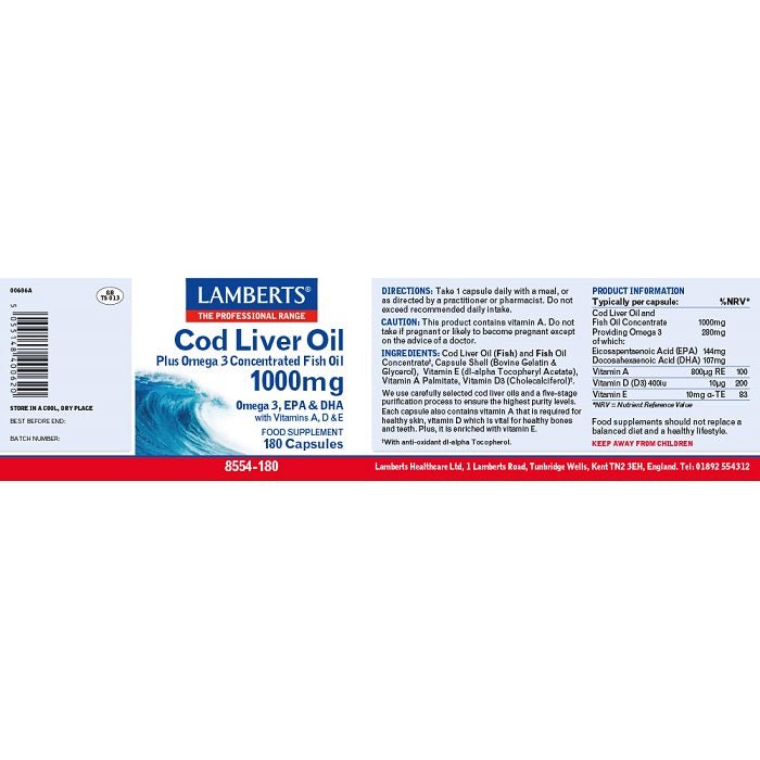 Lamberts Cod Liver Oil 1000mg - 180 Caps