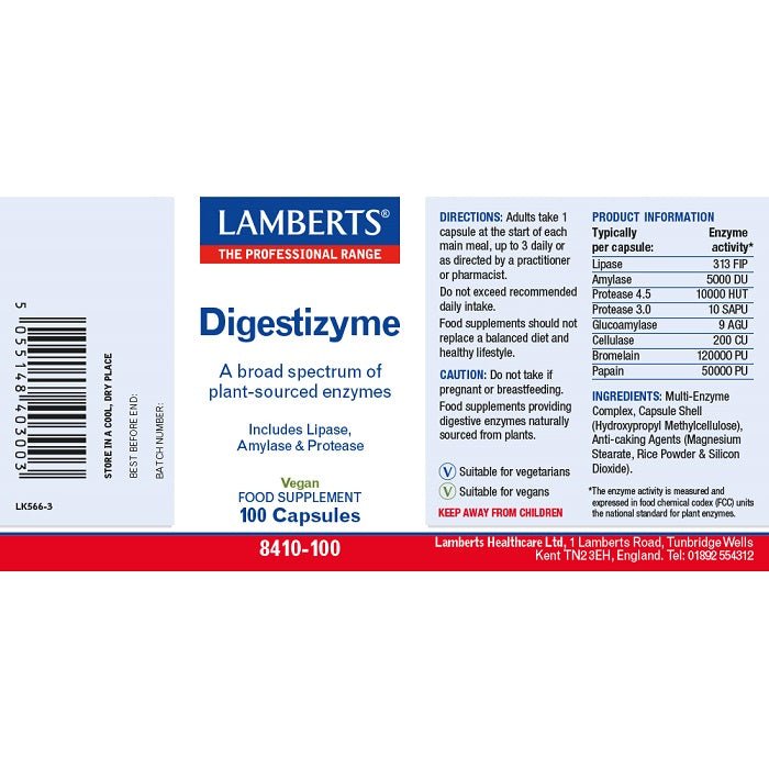 Lamberts Digestizyme (Plant-Sourced Enzymes) - 100 Caps