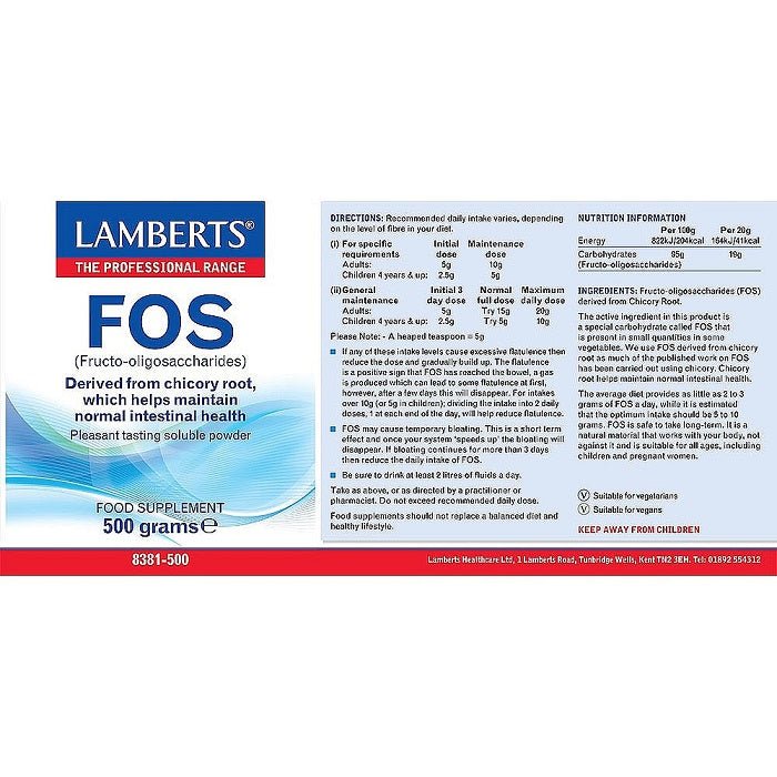 Lamberts Fos (Fructo-Oligosaccharides) - 500g Powder