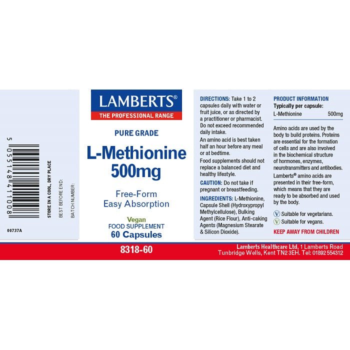 Lamberts L-Methionine 500mg - 60 Caps - RightNutri-Supplements