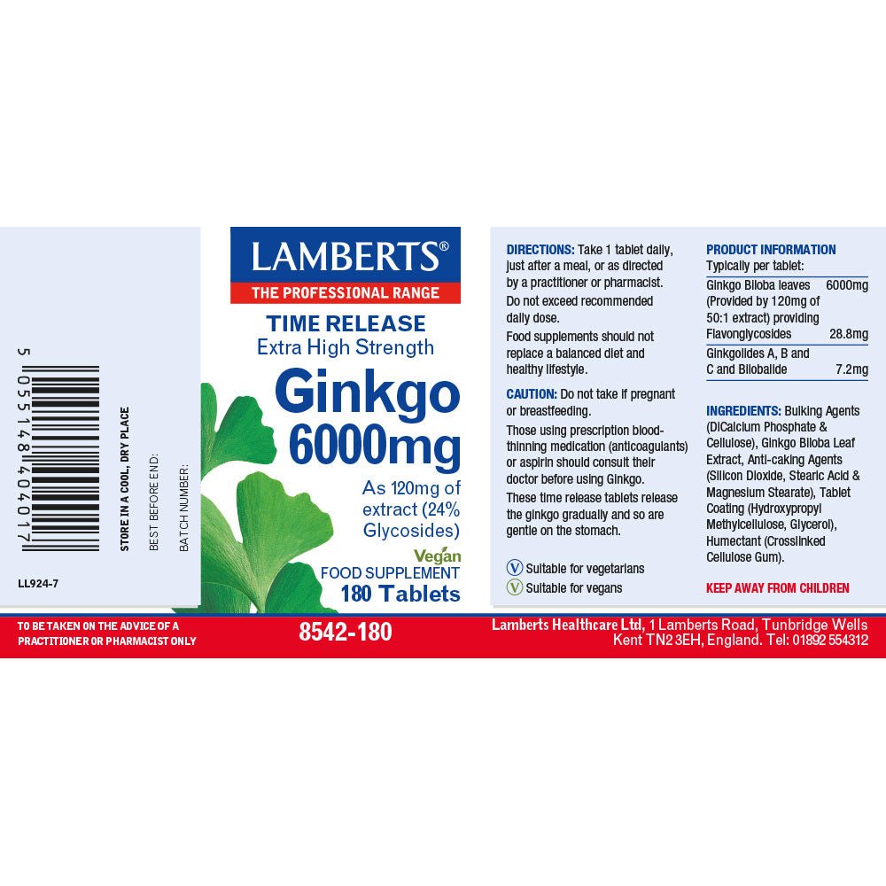 Lamberts Ginkgo 6000mg Extra High Strength - 180 Tabs